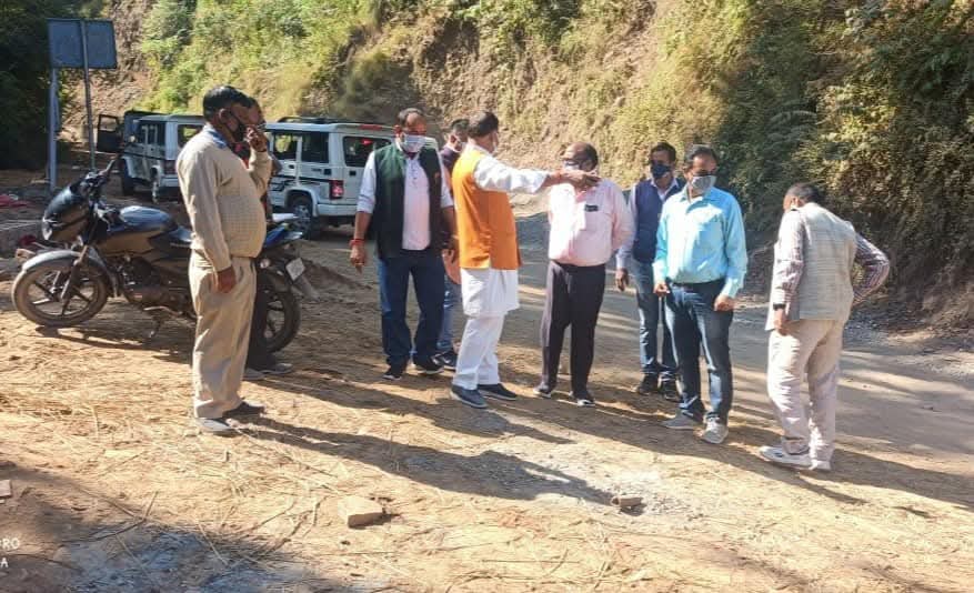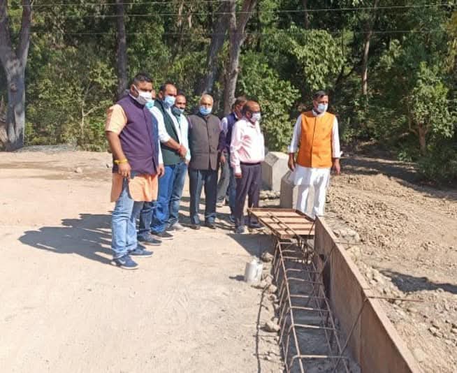 डा. राजीव बिन्दल नाहन विधान क्षेत्र की दुर्गम पंचायत मात्तर में आज सड़क निर्माण कार्य का निरीक्षण करते हुए..!!