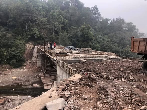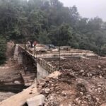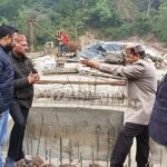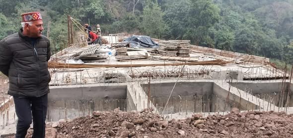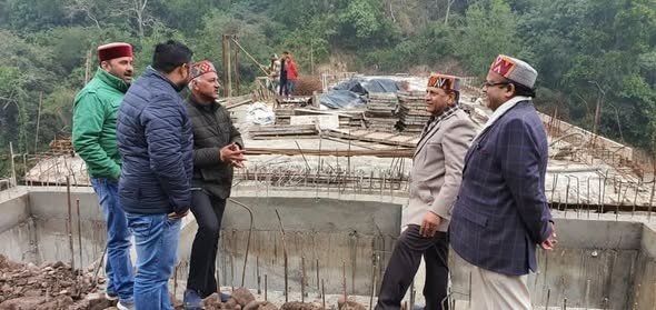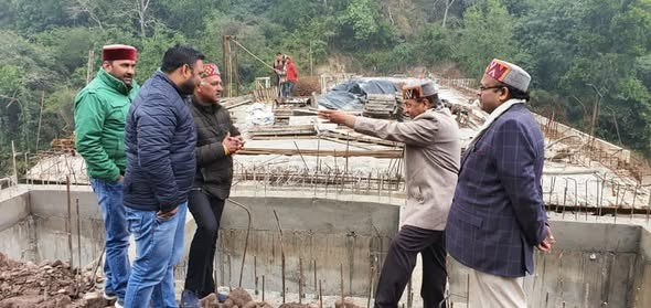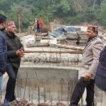 विधानसभा अध्यक्ष डा. राजीव बिन्दल मारकंडे नदी पर निर्माणाधीन पुल का निरीक्षण करते हुए।