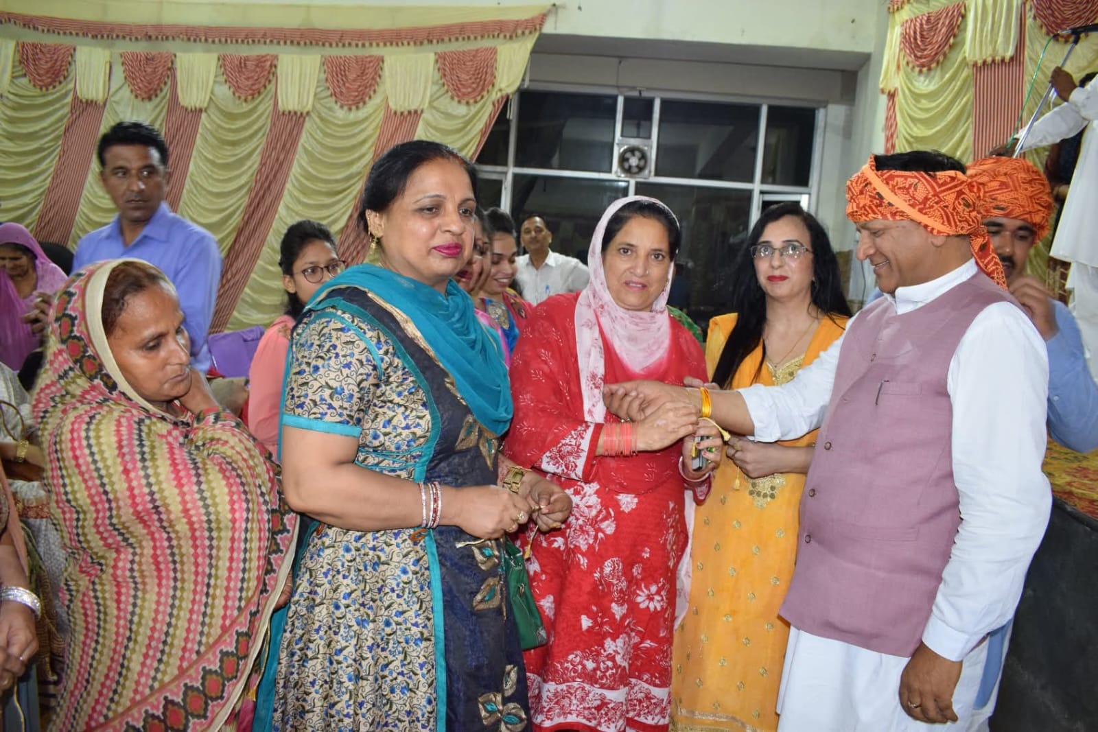 डा. बिन्दल ने सभा में उपस्थित सभी बहनों को रक्षा बन्धन के पर्व की शुभकामनाऐं देते हुए सभी बहनों से अपनी कलाई में राखी बंधवा कर रक्षा बन्धन का त्यौहार बड़ी धूम धाम से मनाया।