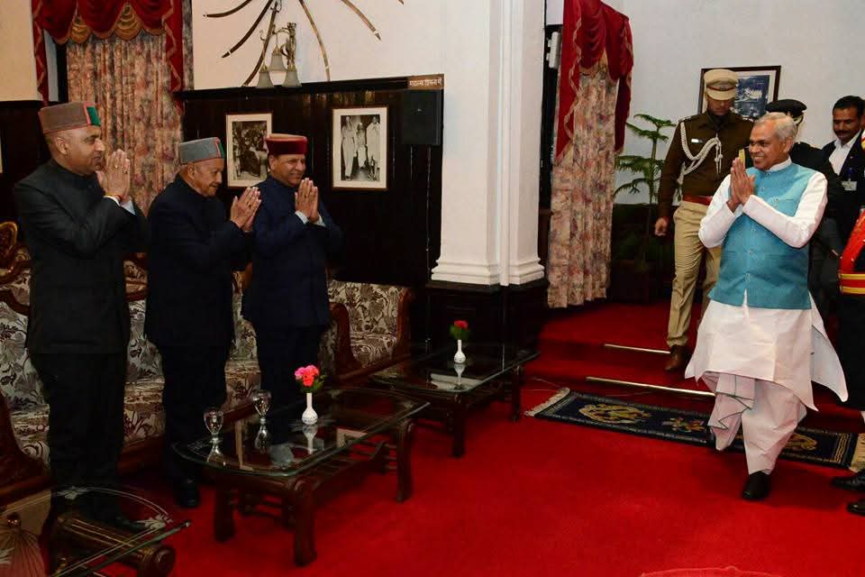 शिमला में महामहिम राज्यपाल द्वारा राजभवन में आयोजित कार्यक्रम में मुख्यमंत्री श्री जयराम ठाकुर , विधानसभा अध्यक्ष डा. राजीव बिन्दल और पूर्व मुख्यमंत्री श्री वीरभद्र सिंह जी भाग लेते हुए।