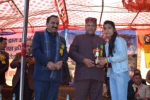 विधानसभा अध्यक्ष डा. राजीव बिन्दल शिलाई के कांडो-भटनौल में आयोजित, एक दिवसीय खेल उत्सव में बतौर मुख्य अतिथि शिरकत करते हुए।