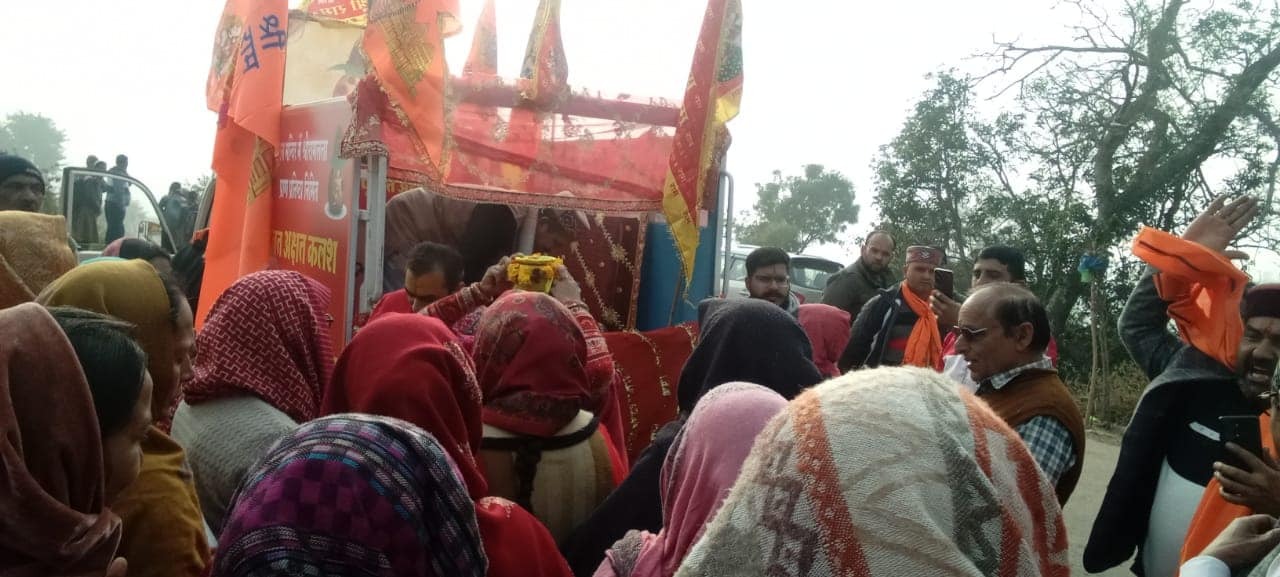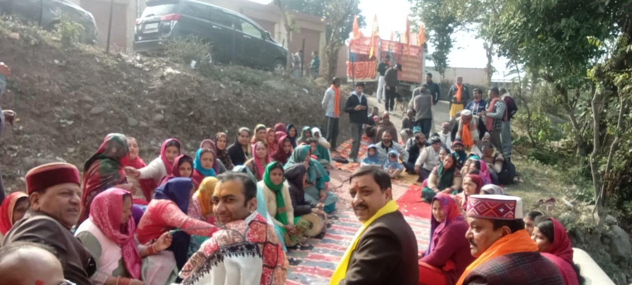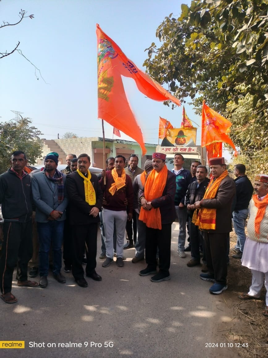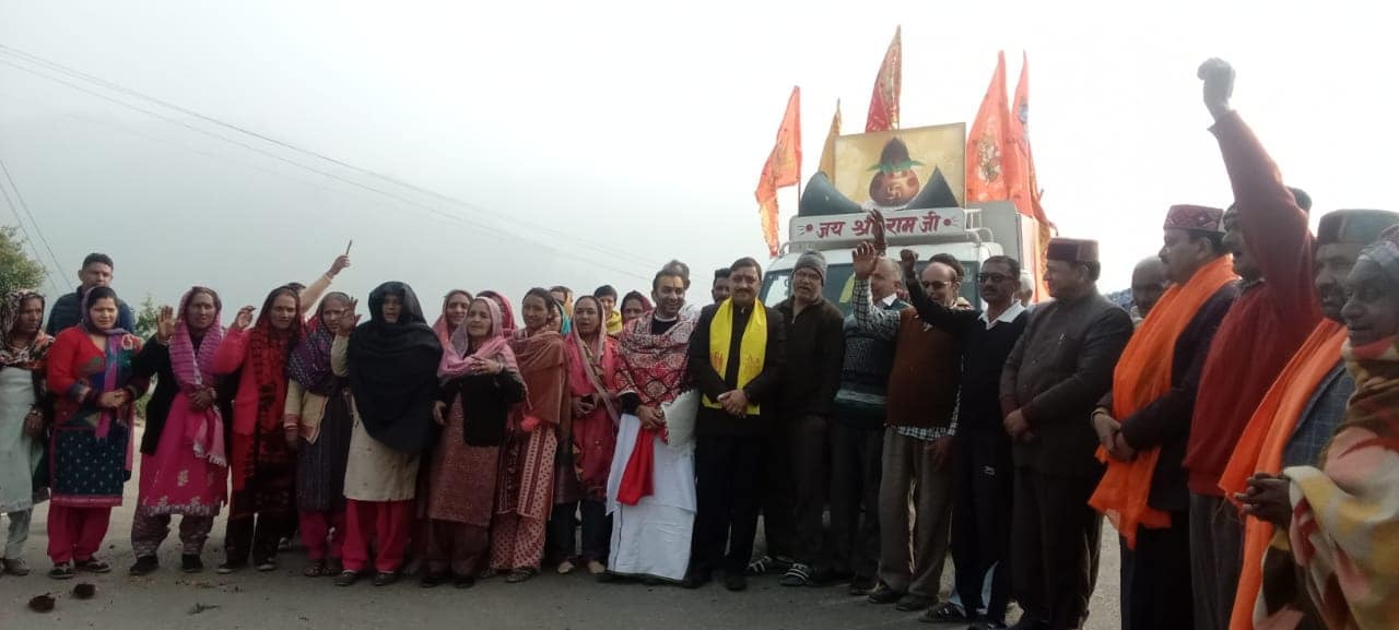 श्री अयोध्या जी से आए हुए पूजित कलश यात्रा पहुंची नाहन के ग्रामीण क्षेत्रों में