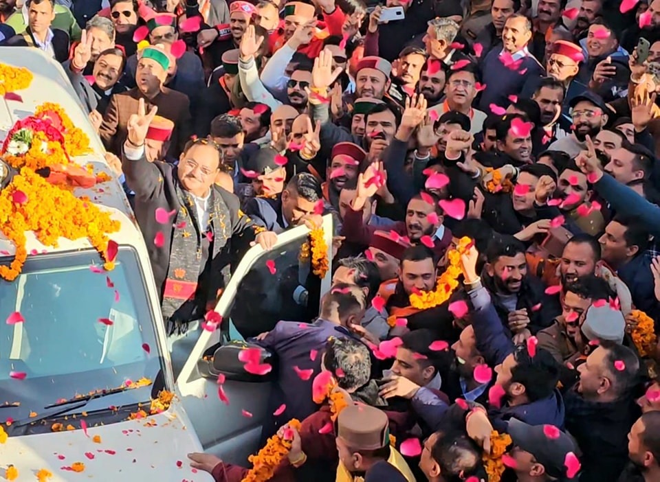 श्री जगत प्रकाश नड्डा जी का कार्यकर्ताओं द्वारा स्वागत-अभिनंदन