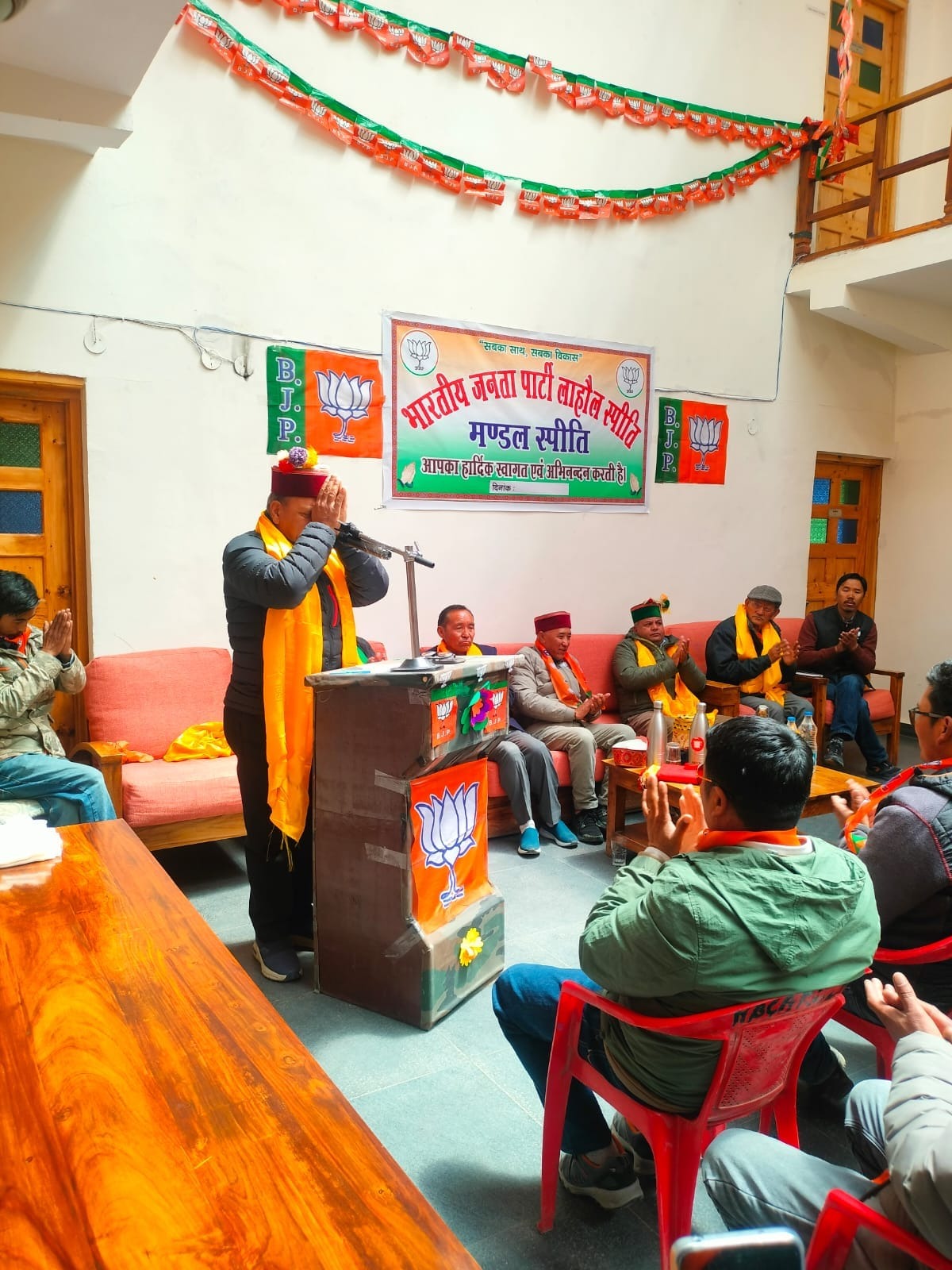 भाजपा प्रदेश अध्यक्ष डा. राजीव बिन्दल ने जिला लाहौल-स्पीति के काजा में भाजपा मण्डल स्पीति के कार्यकर्ताओं को सम्बोधित किया और आगामी लोकसभा चुनाव के दृष्टिगत चर्चा की।