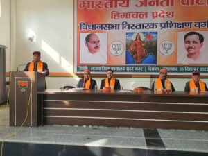 भाजपा प्रदेश अध्यक्ष डा. राजीव बिन्दल ने प्रदेश भाजपा द्वारा संगठनात्मक जिला सुन्दरनगर में विस्तारकों के प्रशिक्षण शिविर में प्रदेश से आये विस्तारकों को सम्बोधित किया।