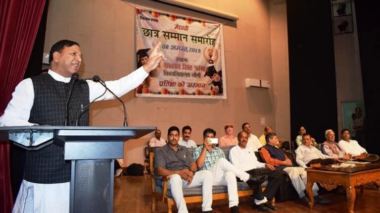 विधानसभा अध्यक्ष डा. राजीव बिन्दल हिमाचल दस्तक दैनिक समाचारपत्र द्वारा सोलन में आयोजित छात्र सम्मान सामरोह में होनहार विद्यार्थियों को सम्मानित करते हुए।