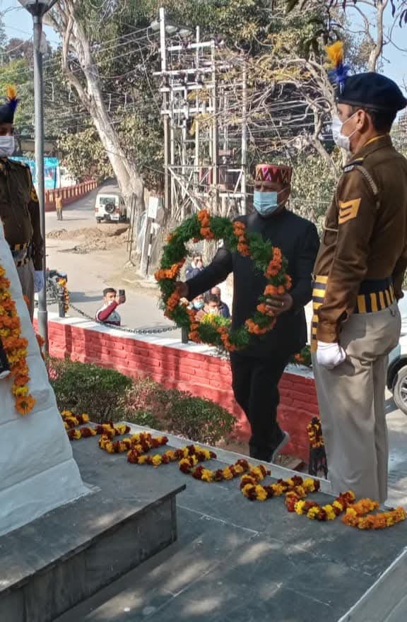 डा. बिन्दल ने  शहीद स्मारक चौक पर भी अमर शहीदों को पुष्पांजलि भेंट की, तत्पश्चात ऐतिहासिक नाहन चौगान में माननीय पंचायती राज मंत्री श्री वीरेंद्र कंवर जी के साथ गणतंत्र दिवस समारोह में भाग लिया।