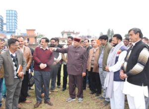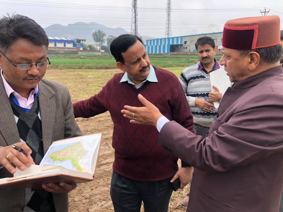 विधानसभा अध्यक्ष डा. राजीव बिन्दल आगामी 20 फ़रवरी को काला अंब इएसआई हस्पताल के शिलान्यास समारोह की तैयारियों की समीक्षा तथा स्पॉट निरीक्षण करते हुए।