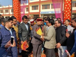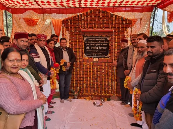 भाजपा प्रदेश अध्यक्ष डा. राजीव बिन्दल नाहन विधनसभा क्षेत्र के रामपुर भारापुर में 12.75 करोड़ रुपये की लागत से पॉलीटेक्निक कॉलेज में गर्ल्ज और ब्यॉज हॉस्टल, स्टाफ आवास तथा 4.16 करोड़ रुपये की लागत से रामपुर भारापुर पेयजल योजना का शिलान्यास करते हुए।