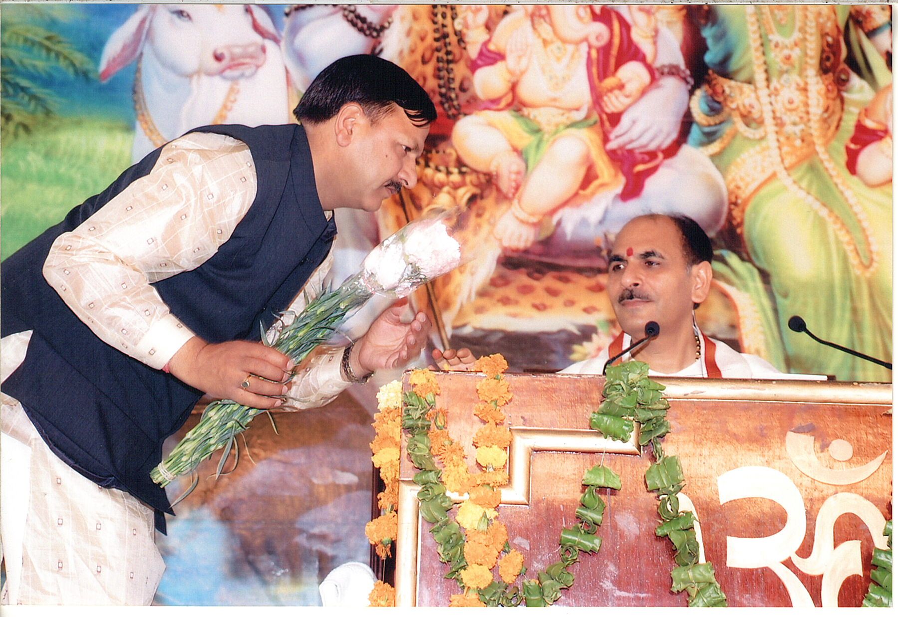 डा. राजीव बिन्दल एक धार्मिक कार्यक्रम भाग लेते हुए।